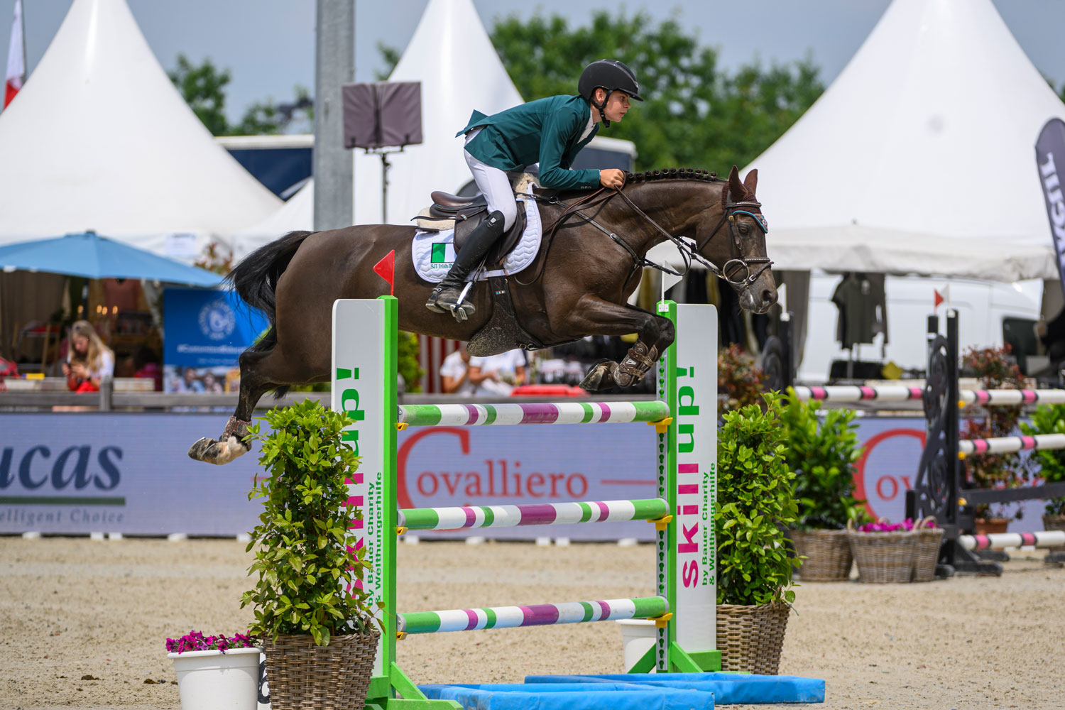 begehrten wie seltenen Titel Elite-Hengst ausgezeichnete No Limit legte im Anschluss an seine Körung 1999 in Oldenburg seine HLP 2000 in Prussendorf mit Traumnoten ab. Für seine Lernbereitschaft erhielt er die Maximalnote 10 und für seine Leistungsfähigkeit, seine Rittigkeit und sein Parcoursspringen ein glattes sehr gut (9,0). Unter jungen Reitern sammelte er Schleifen im Viereck und im Parcours.